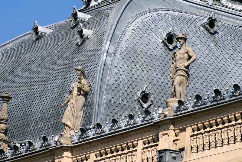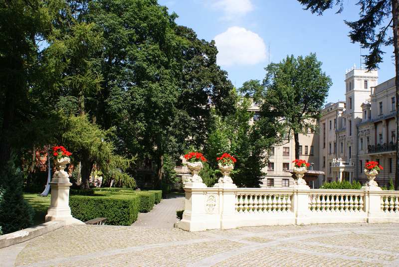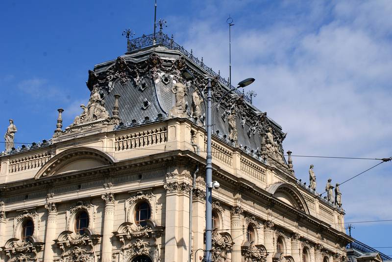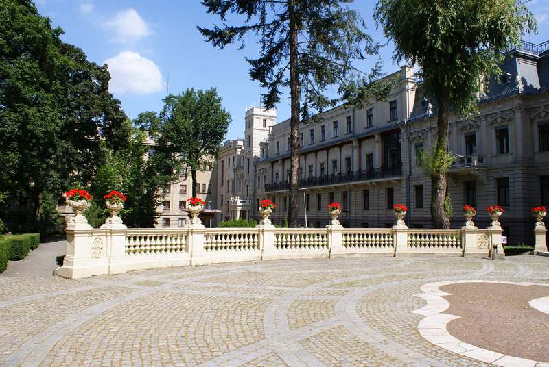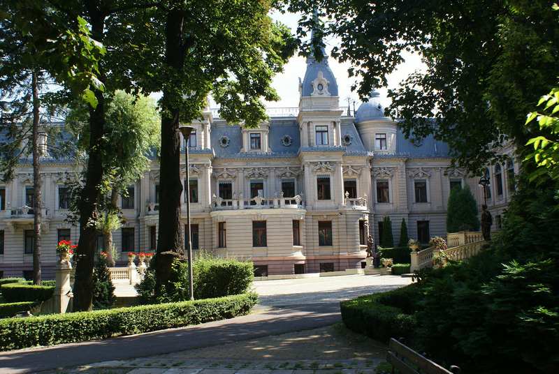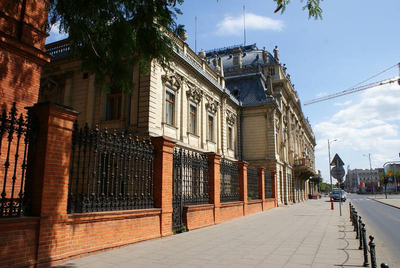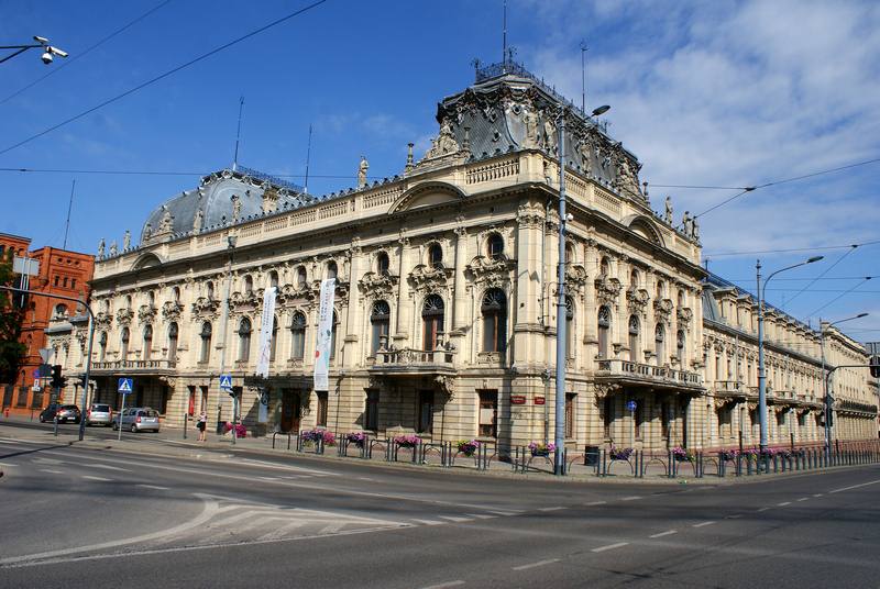 | Pałac Izraela Poznańskiego nie bez powodu nazwany „łódzkim Luwrem”. Jest wyrazem zamożności przemysłowca, obiektem pełnym eklektycznego architektonicznego przepychu i zarazem jednym z najbardziej reprezentacyjnych zabytków Łodzi. Izrael Kalmanowicz Poznański zakupił w 1877 r. posesję u zbiegu ulic Ogrodowej i Zachodniej, celem wybudowania dla swojej rodziny reprezentacyjnej siedziby. Na architektoniczny kształt obiektu wpływ miało kilku architektów, ponieważ pałac ulegał rozbudowom przez kilka lat, aby uzyskać swą świetność w neobarokowym stylu. Pierwotny projekt autorstwa Hilarego Majewskiego, został rozwinięty później przez Adolfa Zelingsona i Franciszka Chełmińskiego. Budynek oparty na planie litery L, z ogrodem na zapleczu. Oczywiście, jak większość siedzib przemysłowców, ta również znajdowała się w sąsiedztwie imponującej rozmiarem fabryki Poznańskiego. Najokazalszą jest część południowa budowli, zwieńczona wypiętrzonymi, kopulastymi dachami, zdobiona figurami – alegoriami przemysłu. Więcej informacji >> | |